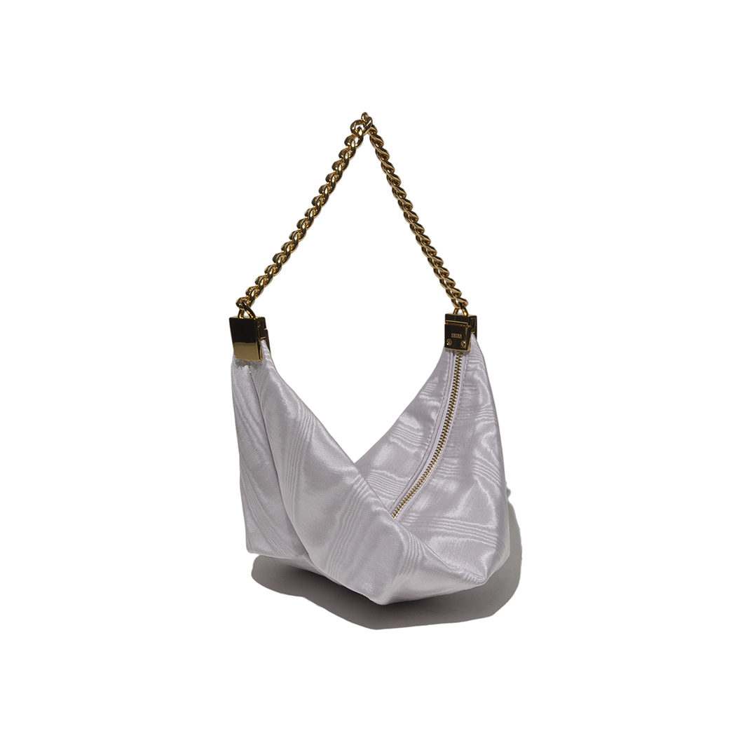 To preserve the beauty of your viscose moiré bag, avoid prolonged exposure to sunlight, heat, humidity, and contact with water, oils, or cosmetics. When not in use, store it in its dust bag and keep it lightly filled to maintain its shape. Clean it only with a soft, dry cloth and keep it in a cool, dry place away from direct light.